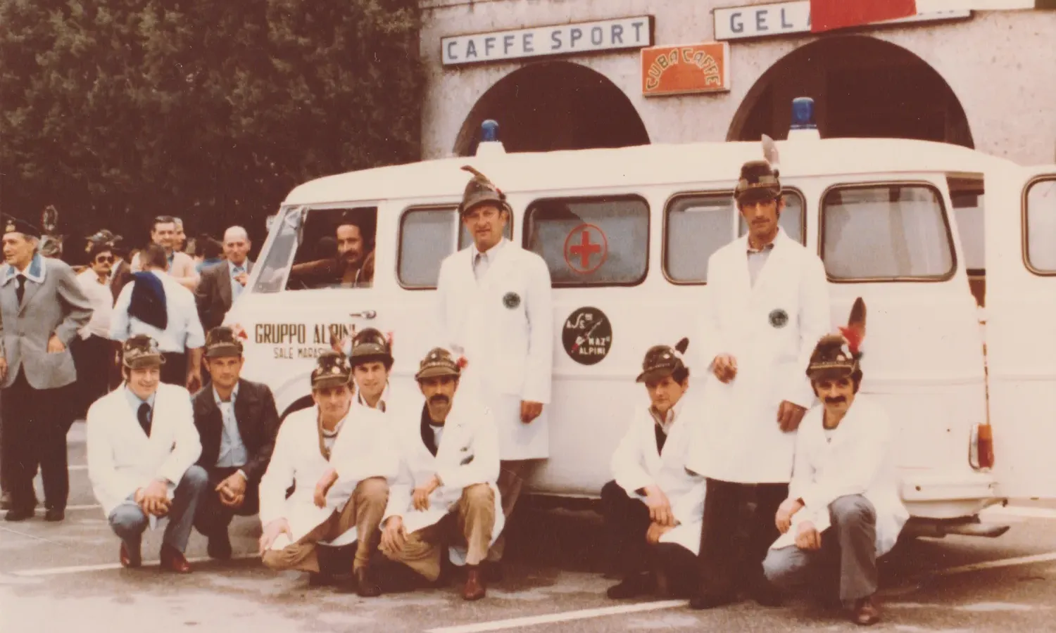 La fondazione del nostro gruppo di volontariato, vede la sua nascita nel 1979 dal desiderio di alcuni Alpini salesi di operare nel sociale e fare qualcosa per i propri compaesani. A quei tempi, in caso di emergenza, i sofferenti venivano trasportati in auto (nei casi più gravi anche con la prima vettura di passaggio!), istituendo così un servizio di primo soccorso e trasporto per chi ne ha bisogno. Decidono di chiamare questa nuova realtà “Gruppo Alpini di Pronto Soccorso”, con una vecchia Alfa Romeo F12, che allestita allo scopo, sarà la loro prima “autolettiga”.
